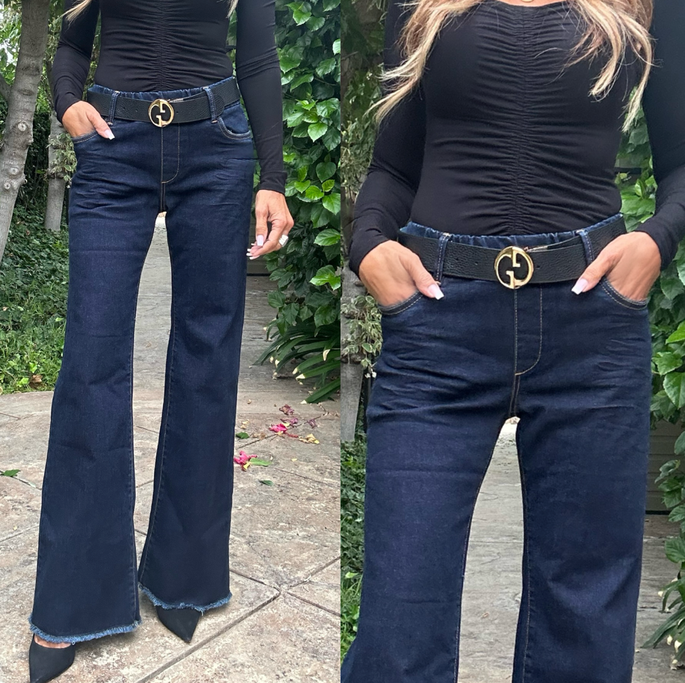 Amanda XD Denim Long with belt loop and flare, soft fabric. 98% cotton 2% lycra. Machine washable. Does not wrinkle or fade. Comfortable, stylish, very flattering. Wear with sneakers, sandals, booties, heels. Wear it casual or dressy for evening. Try them and you will see why these pants have been the #1 selling item in boutiques all around the U.S. Inseam: 30.5", Rise: 10".