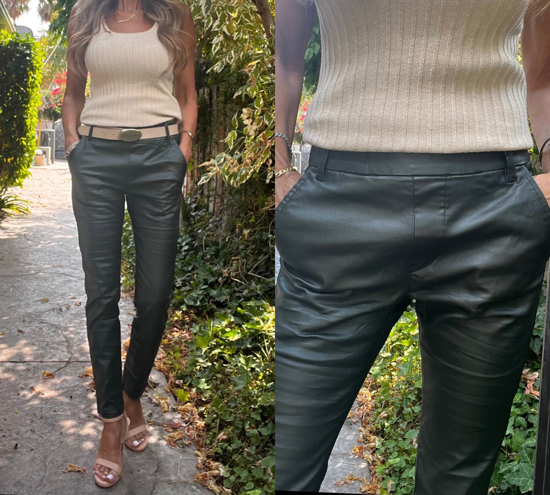 Style Dafna With Belt Loop & Print is Green Vegan. 98% cotton 2% Lycra. Machine washable. Does not Wrinkle or Fade. Comfortable, Stylish, Very Flattering. Wear with or Without Belt. Wear with Sneakers, Sandals, Booties, Heels. Wear it Casual or Dressy for Evening. Try them and you will see why these pants have been the #1 selling item in boutiques all around the U.S. Inseam: 27.5", Rise: 10.5".