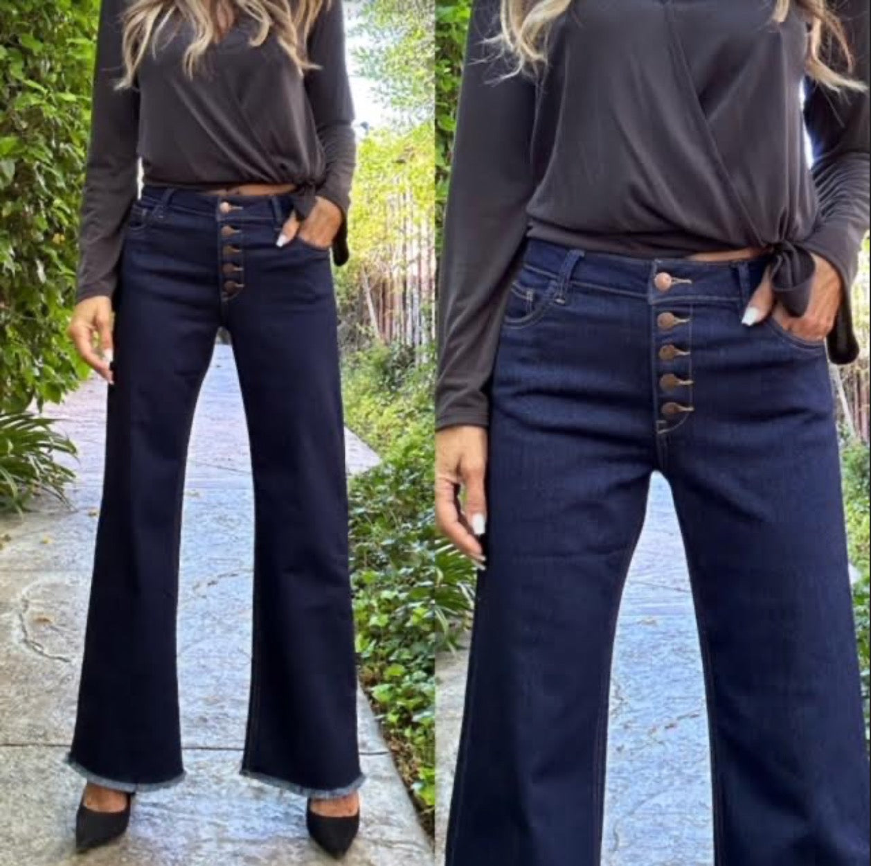 Michelle XD Denim flared style with copper functional buttons . 98% cotton 2% Lycra. Machine washable. Does not Wrinkle or Fade. Comfortable, Stylish, Very Flattering. Wear with Sneakers, Sandals, Booties, Heels. Wear it Casual or Dressy for Evening. Try them and you will see why these pants have been the #1 selling item in boutiques all around the U.S. Inseam: 30", Rise: 9.5".