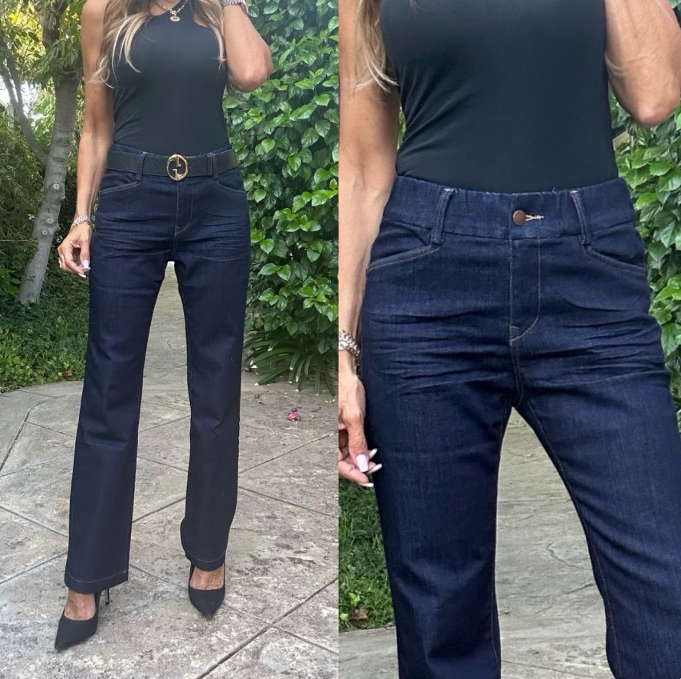 Style Novel With elastic waist, functional button and zipper. Flared Bottom Denim. 98% cotton 2% Lycra. Machine washable. Does not Wrinkle or Fade. Comfortable, Stylish, Very Flattering. Wear with or Without Belt. Wear with Sneakers, Sandals, Booties, Heels. Wear it Casual or Dressy for Evening. Try them and you will see why these pants have been the #1 selling item in boutiques all around the U.S. Inseam: 32", Rise: 12".